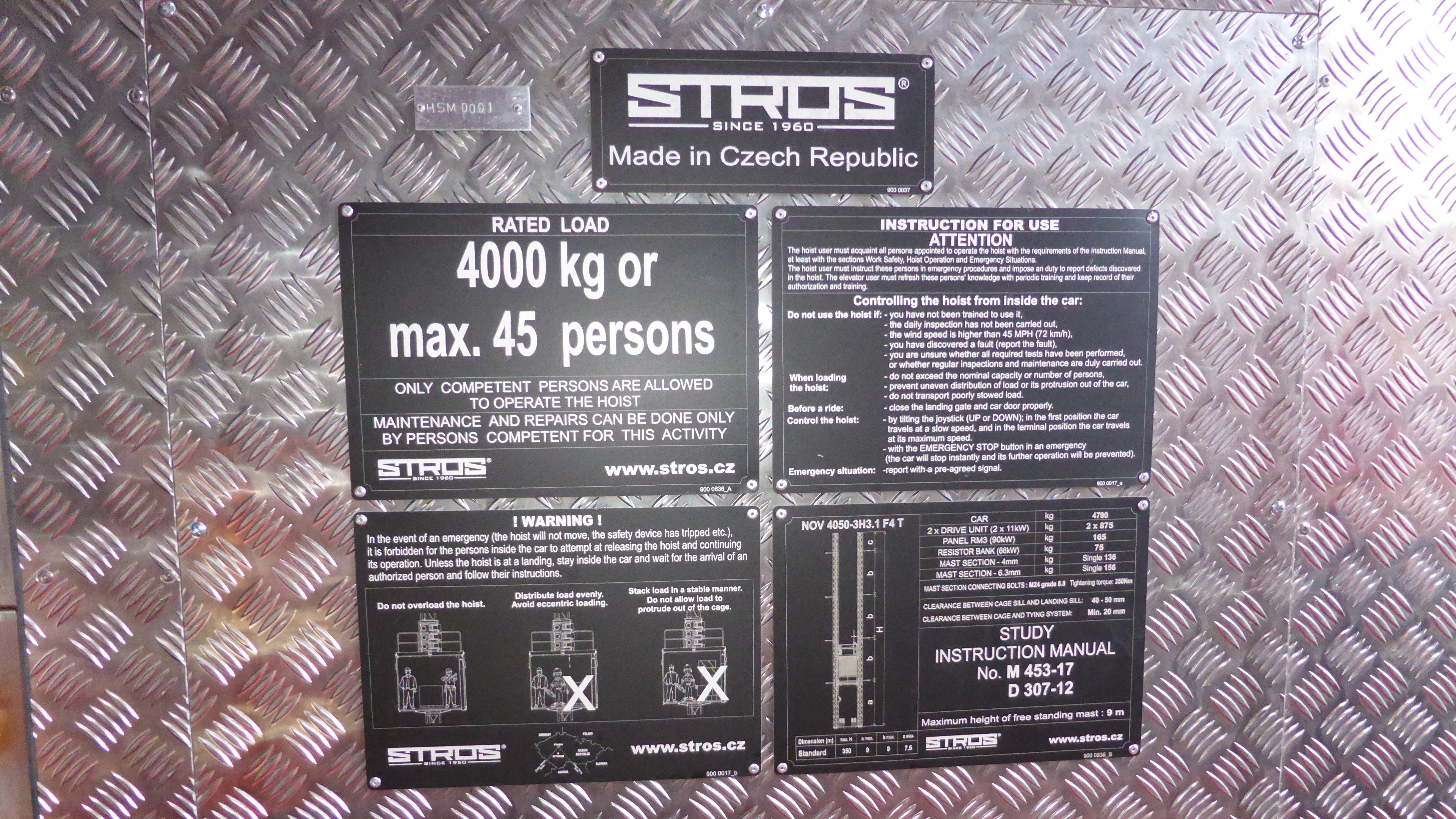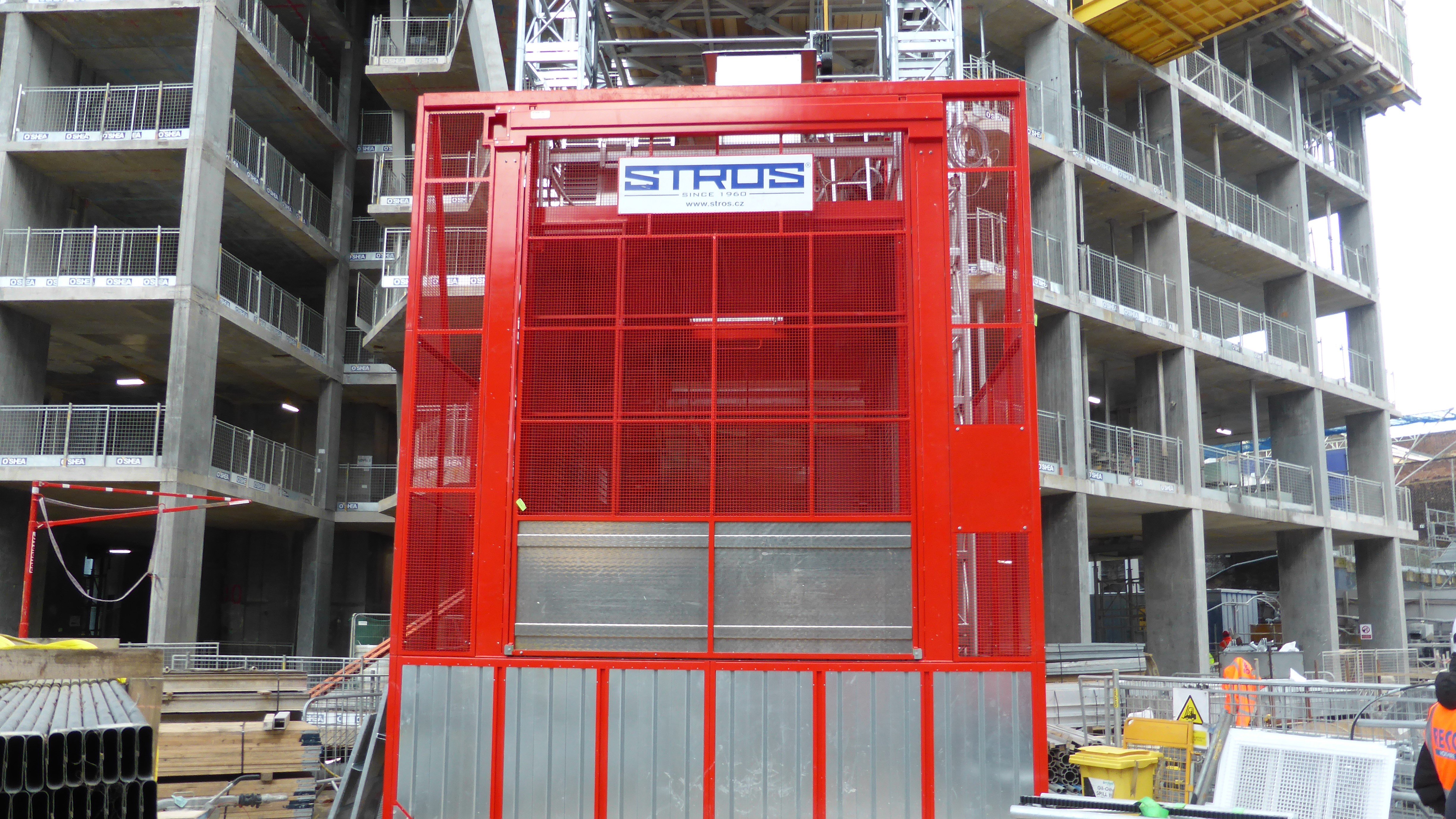 The Mammoth passenger goods hoist by Stros is the largest construction hoist available for rent in the UK. This incredible passenger hoist offers a payload capacity of 4,000 kg transporting both materials and personnel combined. The internal cage dimensions provides an impressive 5 x 3 x 3 metres (L x W x H) and therefore ideal for transporting large cladding panels or bathroom pods to the desired floor levels. This machine perfectly complements our in house common tower access system and can be installed to a height of 200 metres (higher subject to design) with a lifting speed of 40 metres per minute.