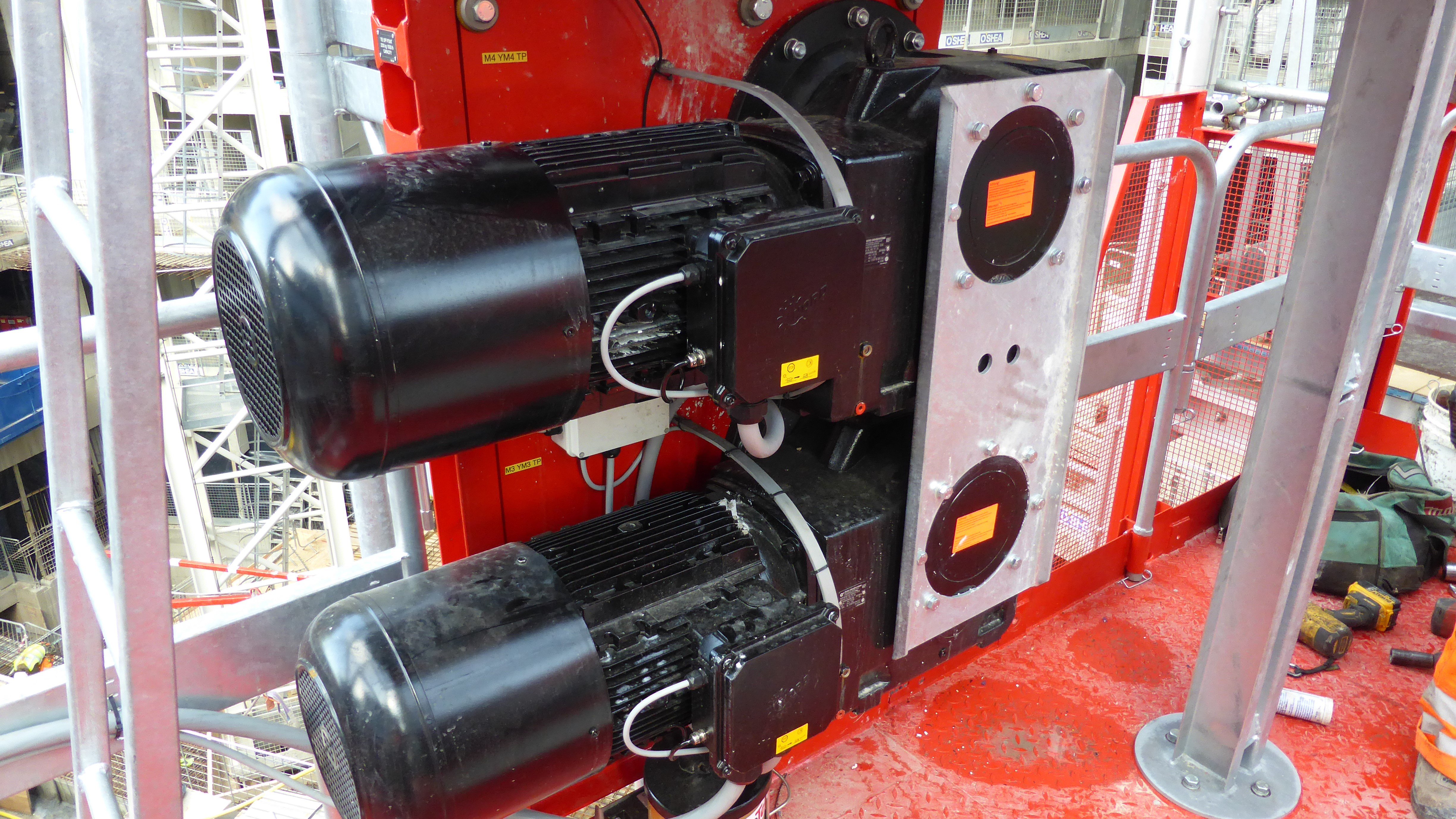 The Mammoth passenger goods hoist is the ideal choice if crane hook time is a premium, as it can be utilized to transport pretty much anything you can throw at it. Installed in conjunction with our common tower system this construction hoist can vastly reduce the construction build phase. This allows site cranage to concentrate on the unloading of deliveries, whilst the Mammoth building hoist takes care of quickly and efficiently transporting materials to the desired floor levels. This reduces costly waiting times and optimizes overall safety within the construction site. The Mammoth passenger hoist is configured as a twin mast machine, promoting lower tie forces to the structure. As real benefit when opting to transport large and heavy materials. Interested in hiring the largest hoist in the UK for your next project? Please contact one of our hoist specialists for a specific quotation.